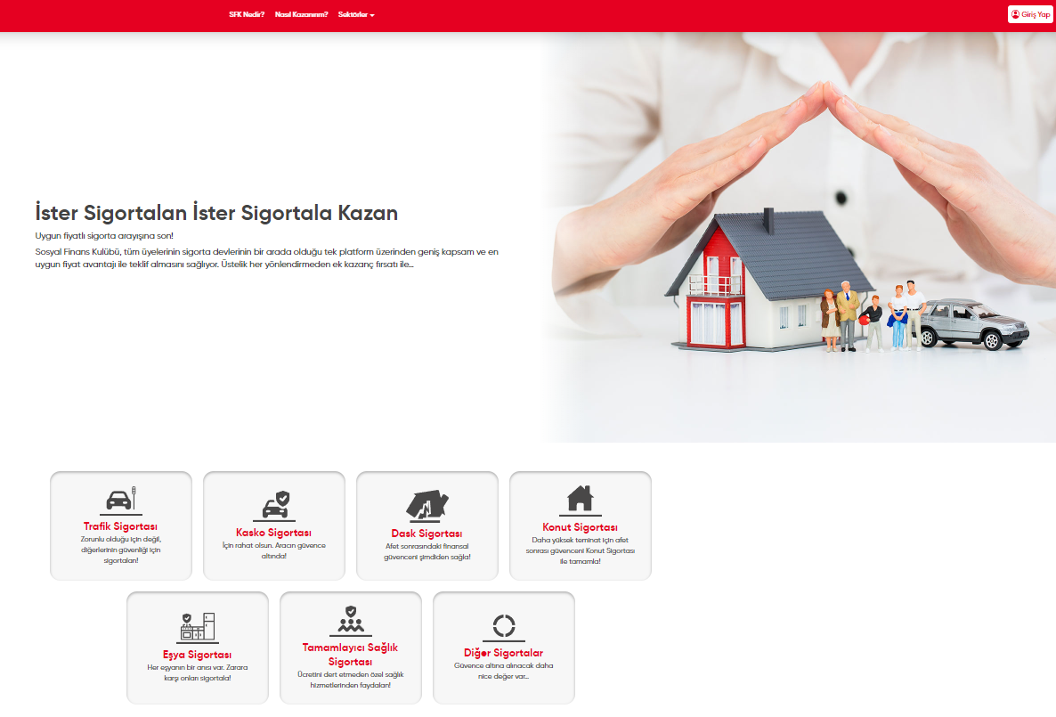 Sosyal Finans Kulübü, üyelerine geniş kapsam ve en uygun fiyat avantajıyla tek bir platformdan sigorta teklifleri almayı sağlar. Üstelik her öneriyle ek kazanç fırsatı...
